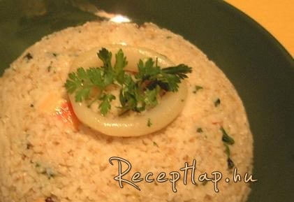 A tengergyümölcsei keveréket olivaolajon megsütjük, és hozzáadom a már megfőzött és pár percig lefedett edényben pihentetett bulgurt. Az egészet összekeverjük.