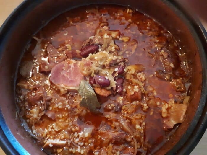Babos káposzta füstölt csülökkel, árpagyönggyel